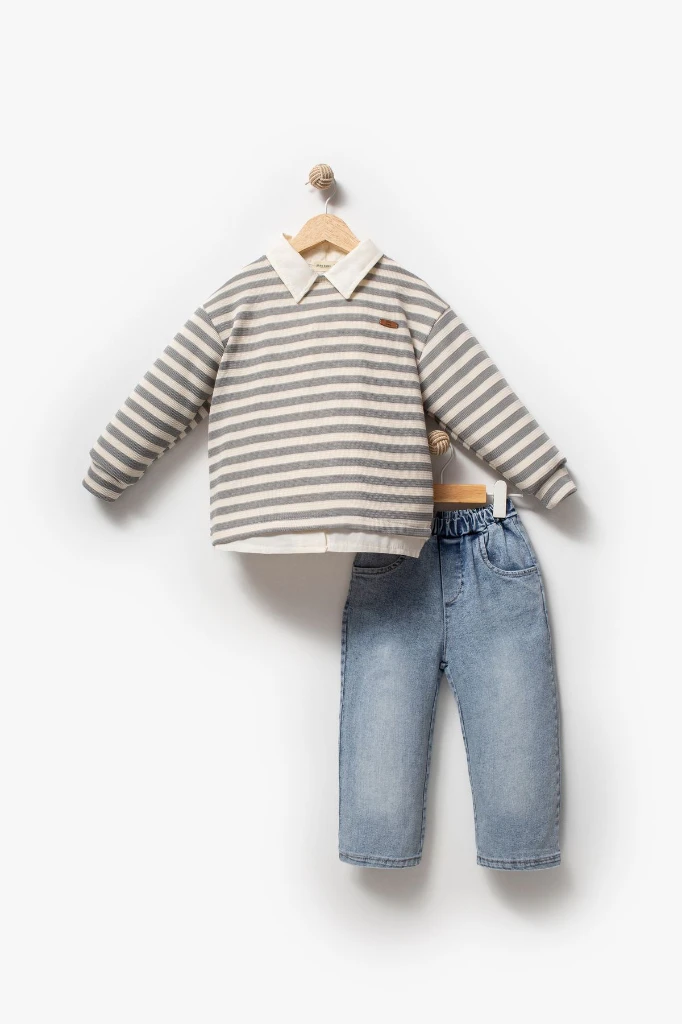 Erkek Çocuk Gömlek Sweat Pantolon Takımı